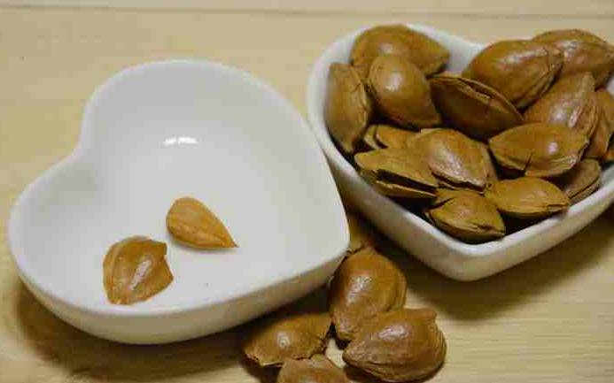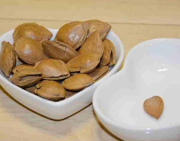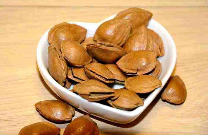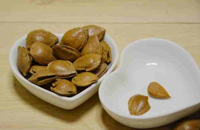 新鲜的杏核,外壳为浅棕色,果衣呈褐色,果肉呈米白色,果壳厚薄均匀,圆润饱满,开口明显。口感脆爽香酥,带着杏仁独有的清香,咬一口,嘎嘣脆,清香四溢,是美味的休闲食品。