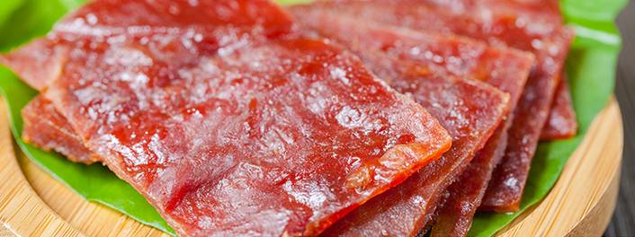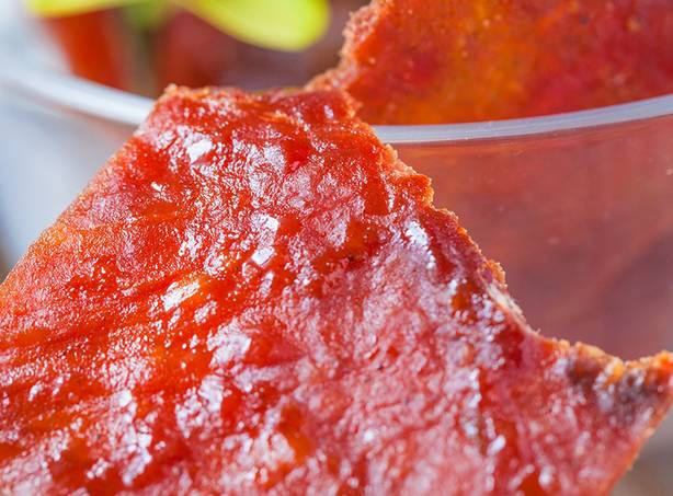 精选新鲜猪瘦肉,猪肉纤维清晰可见,肉质紧实,入口细嚼,干、香、鲜、咸、甜,五味俱全,口感细腻,越嚼越香,回味无穷。